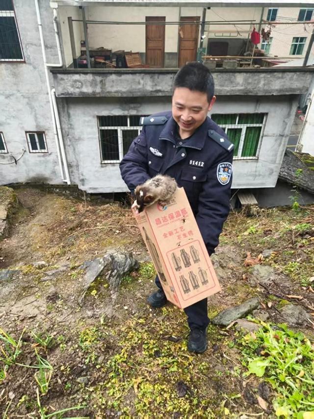 民警立刻联系森警、林业部门,经连线“云辨认”,这只“神秘客”疑似鼬獾,属于国家三级保护动物,同时也是“三有”保护动物,妥妥的“受法律保护的小可爱”。怕小家伙受到二次惊吓,民警化身急救员,小心翼翼地用纸箱给它做了个“临时小家”,带回派出所临时照料:为小家伙准备了清水和新鲜水果补充体力,并对它的颈部进行了消毒处理,待其恢复体力、具备了野外生存能力后,将其放归自然。(陈鹏)